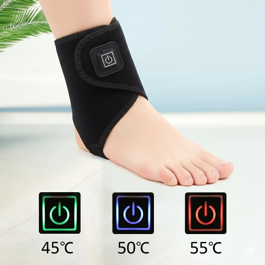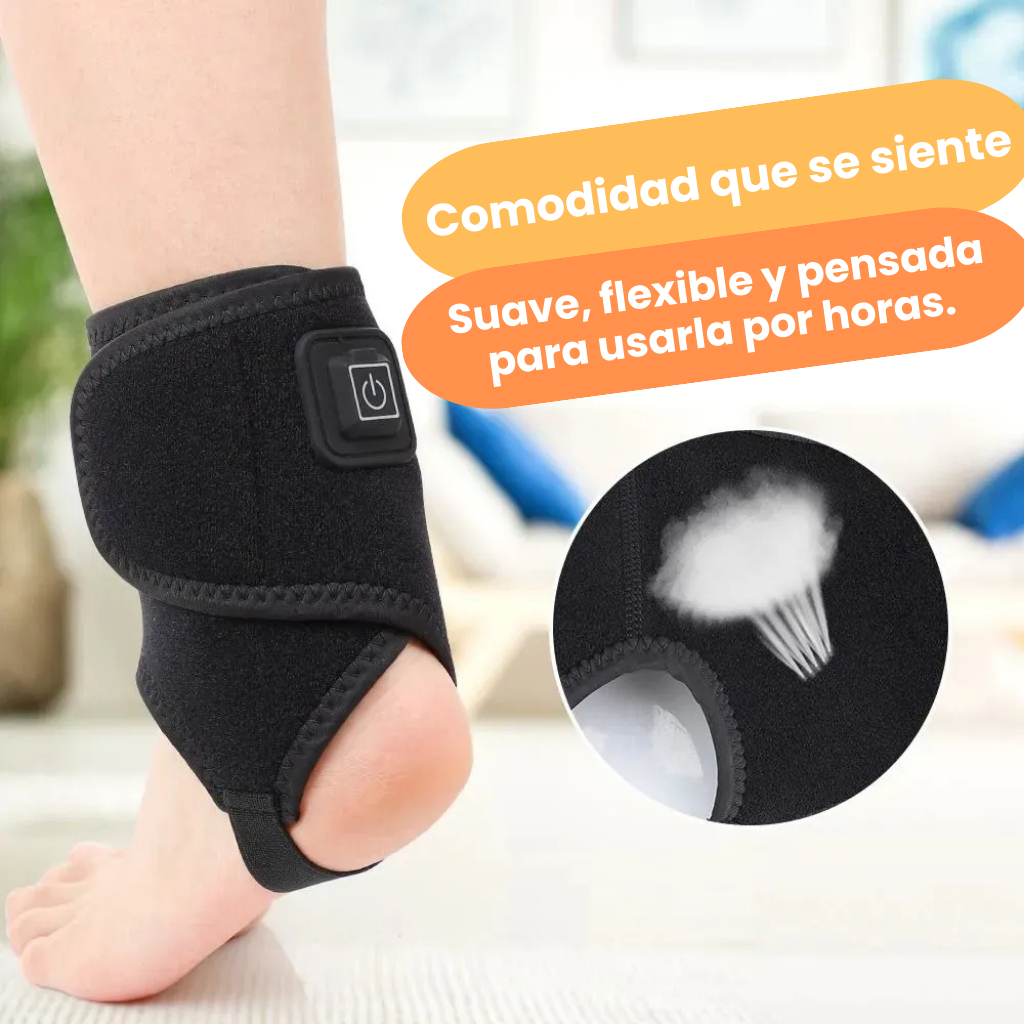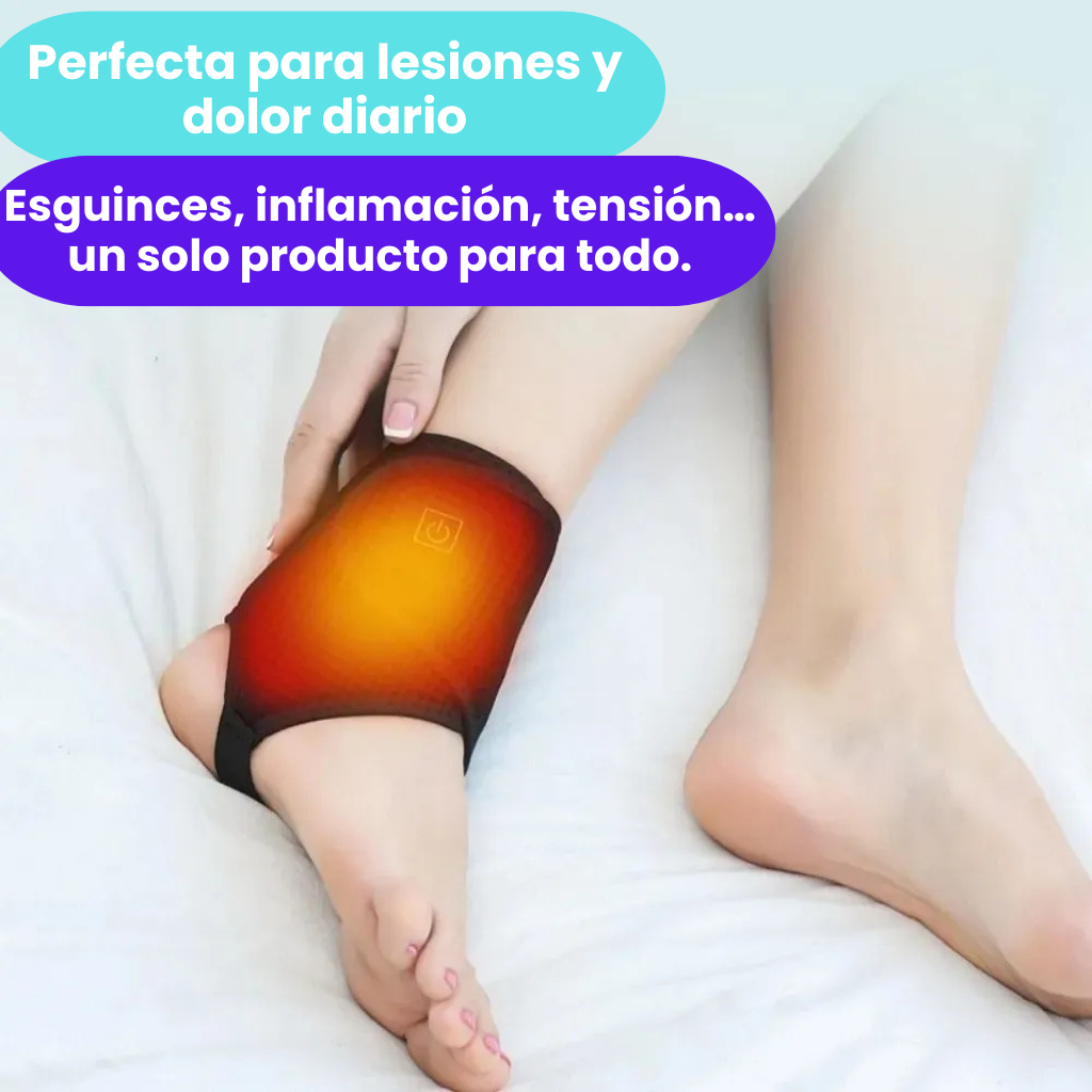 Ahora imagina ponerte esta tobillera, presionar un botón… y sentir un calor profundo, envolvente y terapéutico que relaja, aumenta la circulación y desacelera el dolor en minutos.