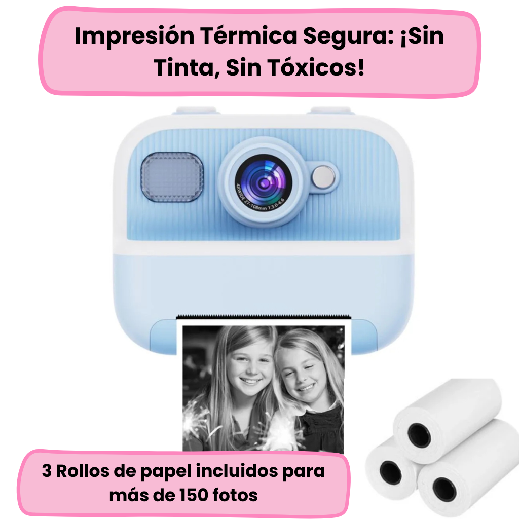 Sabemos que los niños son aventureros y los accidentes ocurren. Por eso, el cuerpo de la cámara está fabricado con plástico ABS de alta calidad, conocido por su resistencia a los impactos. Esta durabilidad significa menos preocupaciones para los padres y más libertad para el niño. Además, la impresión térmica es completamente segura: libre de polvo de carbono, olores y tóxicos, garantizando que el juego sea saludable de principio a fin. Una inversión que resiste el tiempo y el juego rudo.